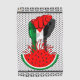 Drapeau de Palestine sur la Révolution Symbole de la liberté sorti d'une pastèque. Dans la Palestine occupée, la pastèque est un symbole de résistance. Avec ses couleurs qui reflètent le drapeau palestinien, le fruit peut être vu des murs de pierre de Gaza aux galeries de Ramallah, ce qui fait allusion à l'histoire politique d'un fruit d'été chéri. Comme la suprématie des occupants israéliens n'a pas permis aux Palestiniens d'exposer leur propre drapeau rouge blanc noir et vert original.