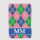 Jolie serviette de golf Monogrammed personnalisée aux couleurs préppy bleu, vert, rose.