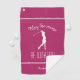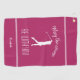 Cette serviette de golf mignonne et moderne présente la citation « Que le parcours soit avec vous ! » avec la silhouette d'une golfeuse en blanc sur un fond rose chic avec des bordures blanches accentuées. Un modèle personnalisable vous permet d'ajouter un nom, des initiales ou une courte ligne de texte.
