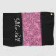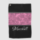 Améliorez votre jeu avec la serviette de golf moderne rose noir blanc Curls Design. Personnalisez avec votre nom.