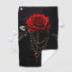 Une rose rouge sang attachée dans des chaînes de fer sur un arrière - plan noir crée une glorieuse serviette de golf Goth.