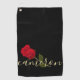 Serviette De Golf Rose Rouge Sur Noir Et Or Monographié