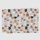 Les chiens mignons de Collie rugueux s'assoient et se tiennent et se retournent avec des manteaux de sable, tricolores, merles et blancs avec des os de chien éparpillés et des motifs de pawprints.