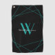 Serviette De Golf Script de nom de monogramme Turquoise noir élégant