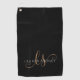 Serviette de golf Monogrammée Black Gold Feminine Script moderne. Personnalisez facilement cette serviette de golf moderne et élégante avec votre monogramme et votre nom personnalisés.