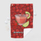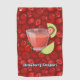 Un verre de daiquiri aux fraises avec garniture. Arrière - plan rouge sans couture. Texte personnalisé.