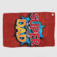 Super Dad Mustache Modern Grunge Golf Towels présente le texte "Super Papa" dans la typographie moderne rouge et jaune sur un arrière - plan gris bleu et rouge accentué d'une moustache. Cadeaux pour papa pour anniversaire, Fête des pères, Noël, vacances et plus encore. Créé par Evco Studio www.zazzle.com/store/evcostudio