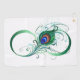 Le symbole de l'infinity with a bright, green, artistic peacock feather on a white background. Tattoo style.