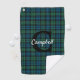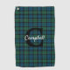Élégante serviette de golf en plaid, avec le motif en plaid Campbell de couleur bleue, verte et noire. Personnalisez le monogramme noir une lettre et le texte blanc en gras, pour répondre à vos besoins.