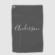 Serviette De Golf Votre nom | Élégant script blanc sur gris