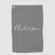 Serviette De Golf Votre nom | Élégant script blanc sur gris
