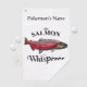 Le design personnalisé parfait pour ceux qui sont stupides pour le saumon. Le nom du pêcheur en haut et couleur pleine image détaillée d'un saumon avec le texte Le Saumon Whisperer.