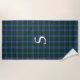 Serviette de plage élégante réalisée dans le motif à carreaux classique de tartan Sutherland, bleu et vert, des clans écossais. Personnalisez la grande initiale d'une lettre blanche au milieu pour répondre à vos besoins.