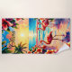 Serviette De Plage Ajouter un nom Fleurs et Flamants roses tropicaux