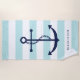Serviette De Plage Ancre bleu monogramme sur bandes bleu clair