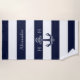 Serviette De Plage Ancre bleue marine Nom du monogramme côtier