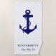 Une serviette de plage chic et moderne sur le thème nautique pour votre bateau qui présente une illustration bleu marine d'une ancre. Personnalisez le nom et l'emplacement de votre bateau dans une élégante typographie et un script bleu marine.