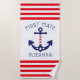 Cette serviette nautique d'inspiration patriotique a une ancre rouge, blanche et bleue décorée d'étoiles et de rayures. Les mots "First Mate" sont ci-dessus avec un nom ci-dessous pour vous de personnaliser. L'Arrière - plan est blanc avec des rayures rouges et blanches à chaque extrémité. Parfait pour le 4 juillet !