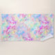 Cette serviette de plage est dotée d'un magnifique tourbillon de couleurs pastel arc-en-ciel teintées de cravate avec de subtiles images holographiques, irisées et aquarelles.