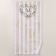 Serviette De Plage aquarelle rayures fleurie couronne monogramme