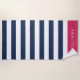 Preppy chic serviette de plage personnalisée en rose et marine dispose de bandes bleu marine et blanc classique large, avec votre nom ou choix de personnalisation le long du fond en lettres blanches audacieuses sur une bande de rose fuchsia vibrante.
