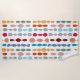 Cette serviette de plage au design moderne du milieu du siècle de cercles et ovales entrecoupés de couleurs rétro entrecoupés sur un champ de blanc.