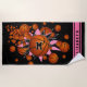 Cette amusante serviette de plage sur le thème du basket présente une "explosion" de balles de basket de tailles variées et des formes d'étoiles noires, roses et blanches sur un arrière - plan noir - un motif de pois blancs minuscules couvre l'étoile rose - customiser avec le monogramme de l'athlète sur les balles de football graphique et nom sur bandes de varsité rose orientées verticalement - par katz_d_zynes