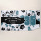 Cette serviette de plage à thème sportif pour les joueurs de football dispose d'une bande de balles de football turquoises, noires et blanches de taille variée tournées partout sur un arrière - plan blanc - personnalisez avec le nom de l'athlète et le numéro de maillot plus le nom de l'équipe et le nom de la mascotte - par katz_d_zynes