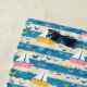 Petits bateaux à voile jaune vintage, rose doux, bleu clair avec le coeur sur un arrière - plan rayé bleu beige avec de petites vagues abstraites. Joyeux motif marin pour les amateurs vintages. Faites-le unique avec votre nom.