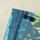 Turquoise, chaux, turq et jaune colorway. Inspiré par les shorts de plage et les chemises aloha des années soixante, ce motif utilise des bandes d'épingles pour créer le rivage tandis que les surfeurs attendent la pause à Big Sunset sur la Rive Nord d'Oahu.