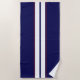 Serviette de plage classe et cool avec rayures de course pour les amateurs de voitures. Modifiez pour correspondre à votre voiture de rêve, changez pour vos couleurs préférées, ou gardez les fines bandes rouges et blanches sur un arrière - plan bleu foncé. ♡ Idyllfire