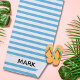 Une superbe serviette de plage rayée avec motif rayé bleu et blanc. Personnalisez avec votre nom.
