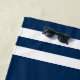 La serviette de plage Nautical présente un ancrage de bateau de style côtier et des rayures. Personnalisez le texte personnalisé avec un nom de famille + maison de lac (ou autre titre) avec l'année établie et l'emplacement. Le bleu marine et le blanc sont des couleurs classiques.