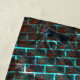 Coloré rouge et bleu, rayures, râpe ou autre effet de mur de brique penché avec tache bleue sur joint de brique.