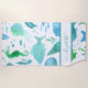 Sous la mer, thème océan. Un arrière - plan blanc chic avec un motif d'eau de la vie marine, poissons, dauphins, baleine, tortue, hippocampe, méduses en vert, bleu et turquoise. Parfait pour une maison de plage ou une maison d'été. Personnalisez et ajoutez votre nom. Le nom est écrit avec un script bleu vert à la main avec des swashes. Pour que les swashes ne suppriment que le nom de l'échantillon, laissez les espaces ou émoticônes devant et après le nom.
