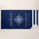 Une serviette entièrement personnalisable et d'amusement de plage avec un thème nautique unique. Il comporte un rose de boussole centré dans le milieu et une marine profonde pourtant vibrante et un modèle de couleurs blanc. Tous les éléments sont débloqués et réglables, ainsi ont l'amusement créer et lui faire vos propres.