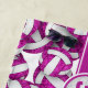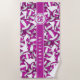 Cette serviette de plage motif de volleyballs unique dispose d'un motif aléatoire de taille variée, rose vif / violet et blanc stylisé volleyballs tournés à chaque aller sur un arrière - plan blanc personnalisable - personnalisez avec son nom et son numéro de maillot - par katz_d_zynes