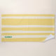 A modern personalized beach towel with bright butter yellow cabana stripes that will make you look chic and stylish on the beach this summer.