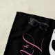 Tapis de plage minimaliste calligraphié rose, blanc et noir pour la mariée avec le nom de famille futur de la mariée pour aider à célébrer la future Mme pendant une fête de bachelorette / week-end de bachelorette.