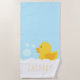 Quack, quack ! La serviette de plage en caoutchouc jaune Ducky, conçue par Enchantfancy Design Company, comprend un mignon canard jaune flottant sur des bulles de bain. Personnalisez avec votre choix de nom ! Cette serviette de plage est un cadeau adorable pour les bébés amateurs de piscine ou de plage, les tout-petits et les jeunes enfants.