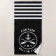 Capitaine ou votre titre avec une Ancre nautique et des voitures croisées avec votre nom de bateau personnalisé Marine Black Beach Towel. Cette serviette personnalisée ne vous permettra pas seulement de vous sécher, mais aussi de vous amuser en conversation. Fait un objet cadeau pour toute occasion.