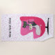 Cette serviette de plage personnalisée est composée d'un chats noir et blanc de fantaisie assis ensemble dans une chaise rose du milieu du siècle sur un arrière - plan blanc aux points roses. Customisez votre texte avec le modèle.