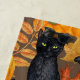 Motif peint à la main avec chats noirs, citrouilles et feuilles d'automne. Mix-media- peinture numérique et aquarelle.