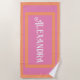 Serviette de plage cool aux couleurs ensoleillées de l'été. Arrière - plan rose chaud avec rectangles orange vif avec espace pour votre nom ou monogramme. Idéal pour un cadeau !