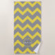Serviette De Plage Chevron jaune gris motif lignes rayures Monogramme
