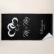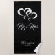 CHIC BEACH TOWEL_CLASSIC, MODERNE, MR & MRS. TEXTE BLANC SUR NOIR. LES COEURS BLANCS. NOM ET DATE EN BLANC.