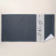 Chic bleu foncé serviette de plage cadeau de vacances avec les bénédictions de texte en écriture élégante sur un arrière - plan crème. Conçu exclusivement pour vous par Happy Dolphin Studio.