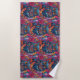 Serviette De Plage Chouette Art Dessin Chouette bleue et fleurs roses