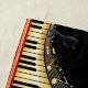 Clavier doré moderne, notes et clé trible avec bande rouge sur arrière - plan noir. monogramme facultatif