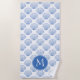 Cette mignonne serviette de plage présente des coquilles de Saint-Jacques bleues côtières sur un arrière - plan de blanc massif. Personnalisez le monogramme bleu et blanc correspondant avec votre choix d'origine. Parfait pour votre prochain voyage à la plage !